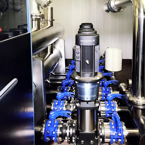 采用一對一變頻控制,智能水泵效率均衡控制系統,確保各泵始終運行在高效區。