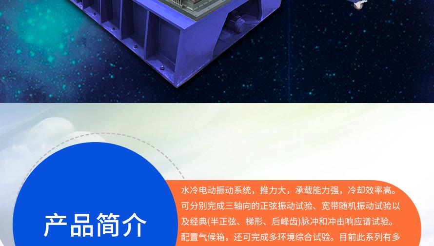 產品型號:JQW-502-450 品牌:劍 喬 用途:水冷臺電動試驗系統,推力大,承載能力強,冷卻效率高。可分別完成三軸向的正弦振動試驗、寬帶隨機振動試驗以及經典(半正弦、梯形、后峰齒)脈沖和沖擊響應譜試驗。